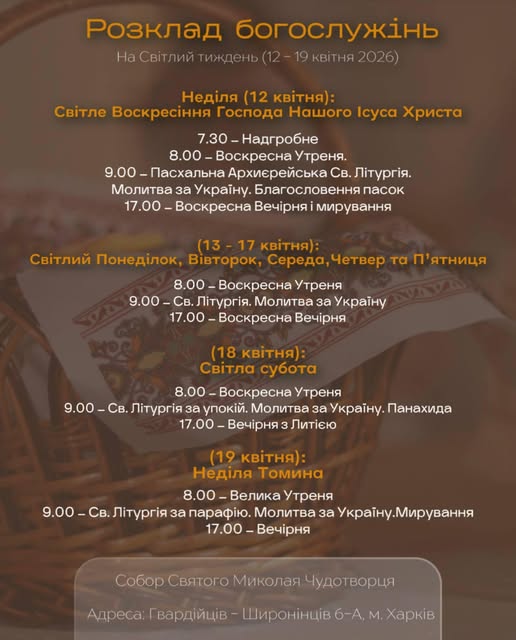 Розклад богослужінь у катедральному соборі святого Миколая Чудотворця на Страсний і Світлий тижні