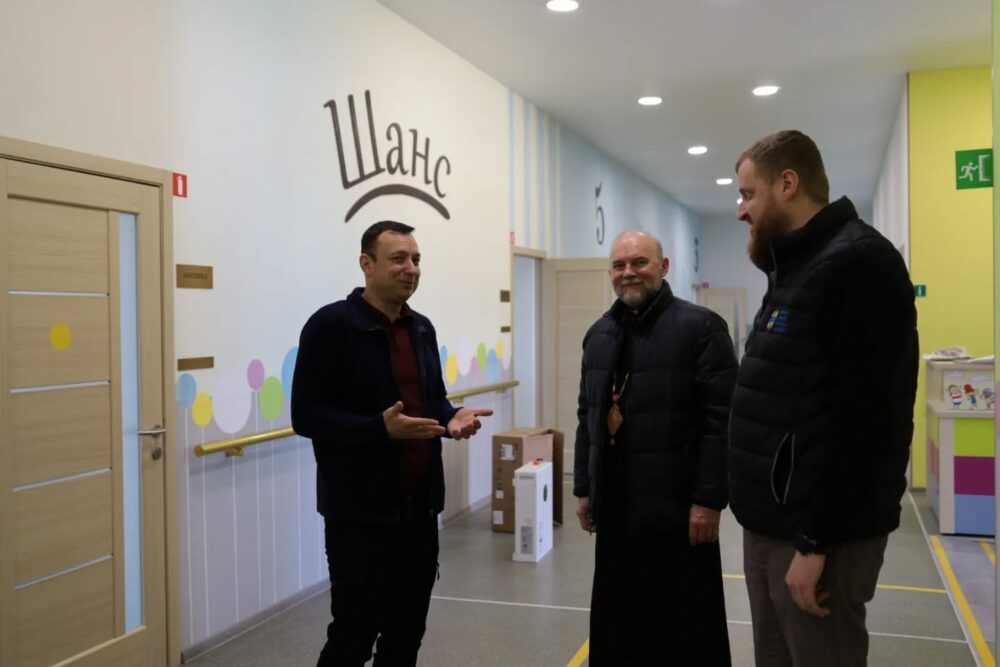 Владика Василій та директор Карітасу Харків о. Андрій Насінник передали обладнання Центру для дітей з інвалідністю «ШАНС»